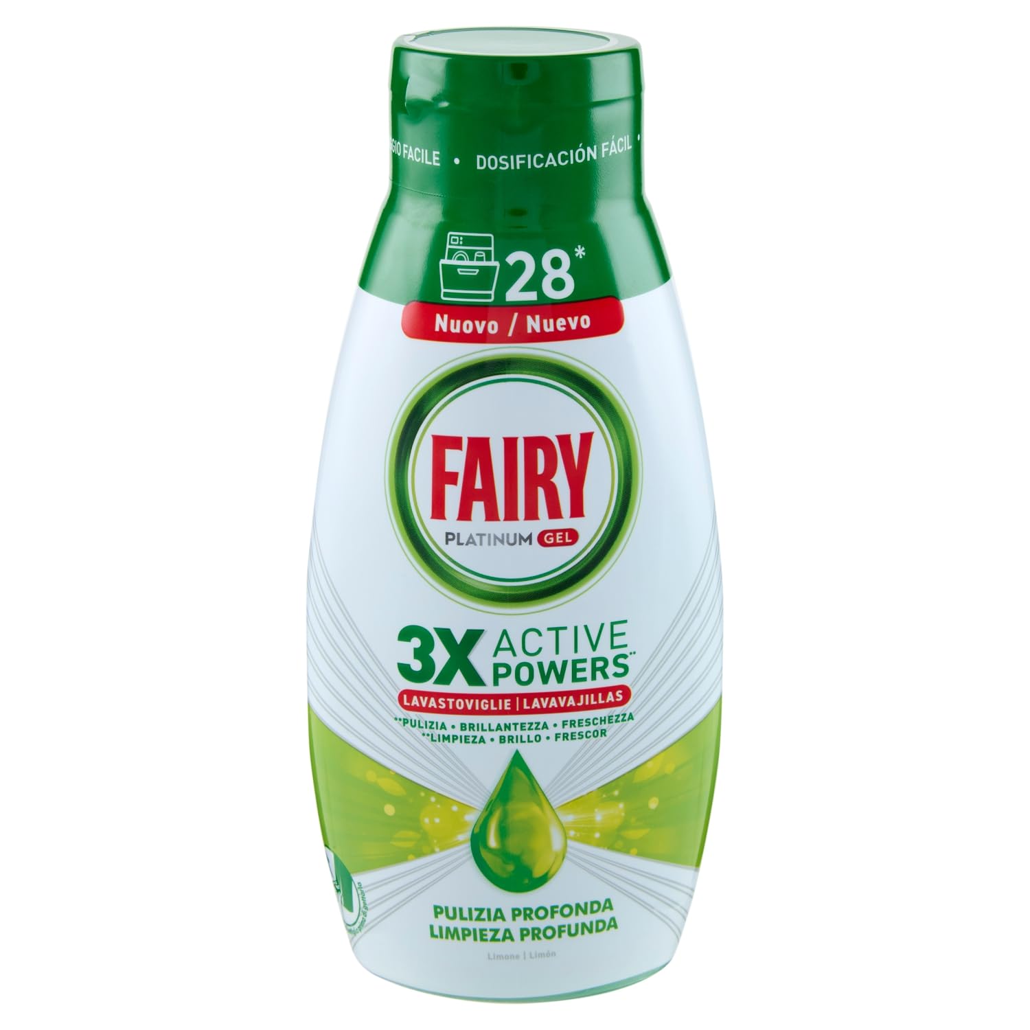 Fairy Gel Lavastoviglie Platinum Pulizia Profonda, Detersivo Piatti Limone 28 Lavaggi 540ml
