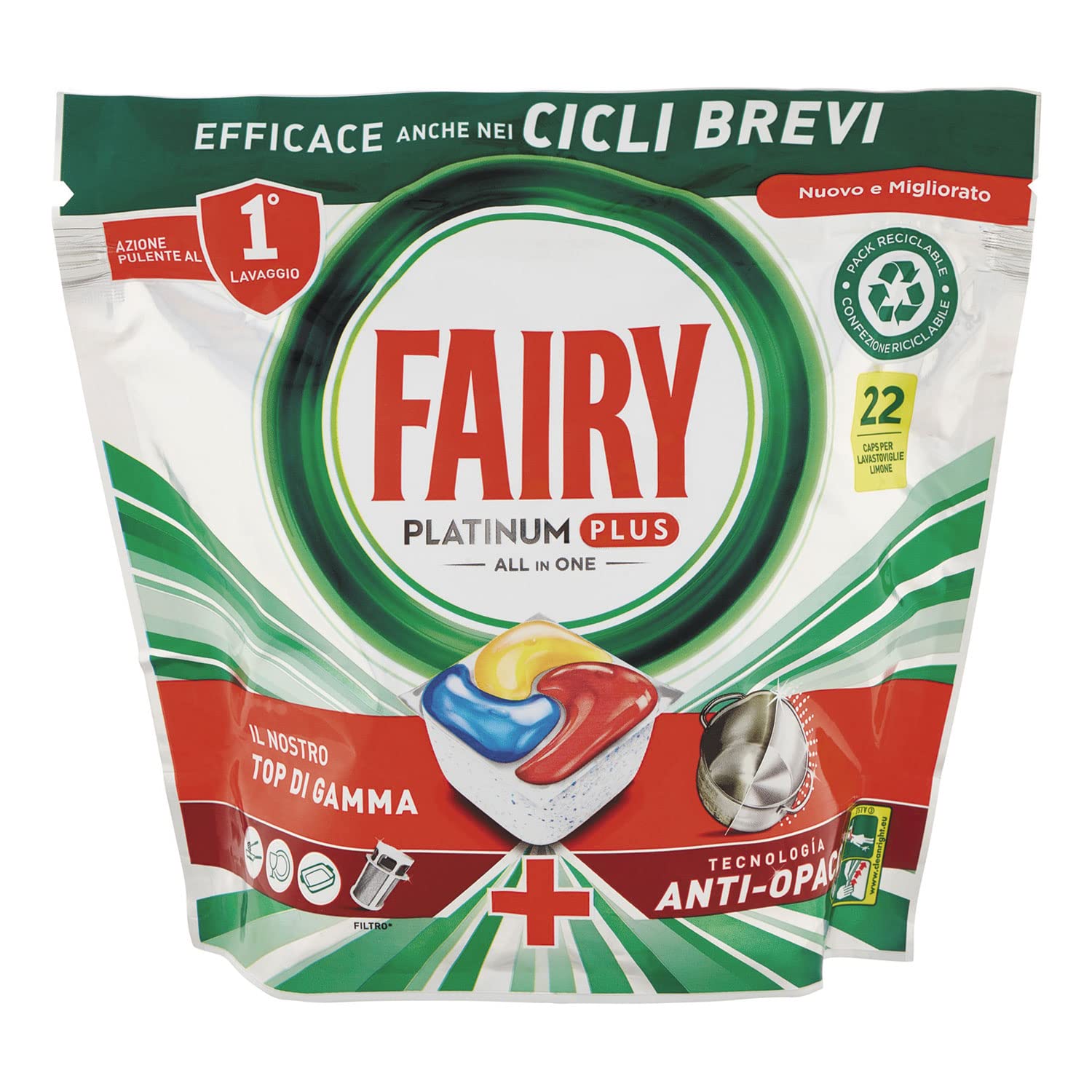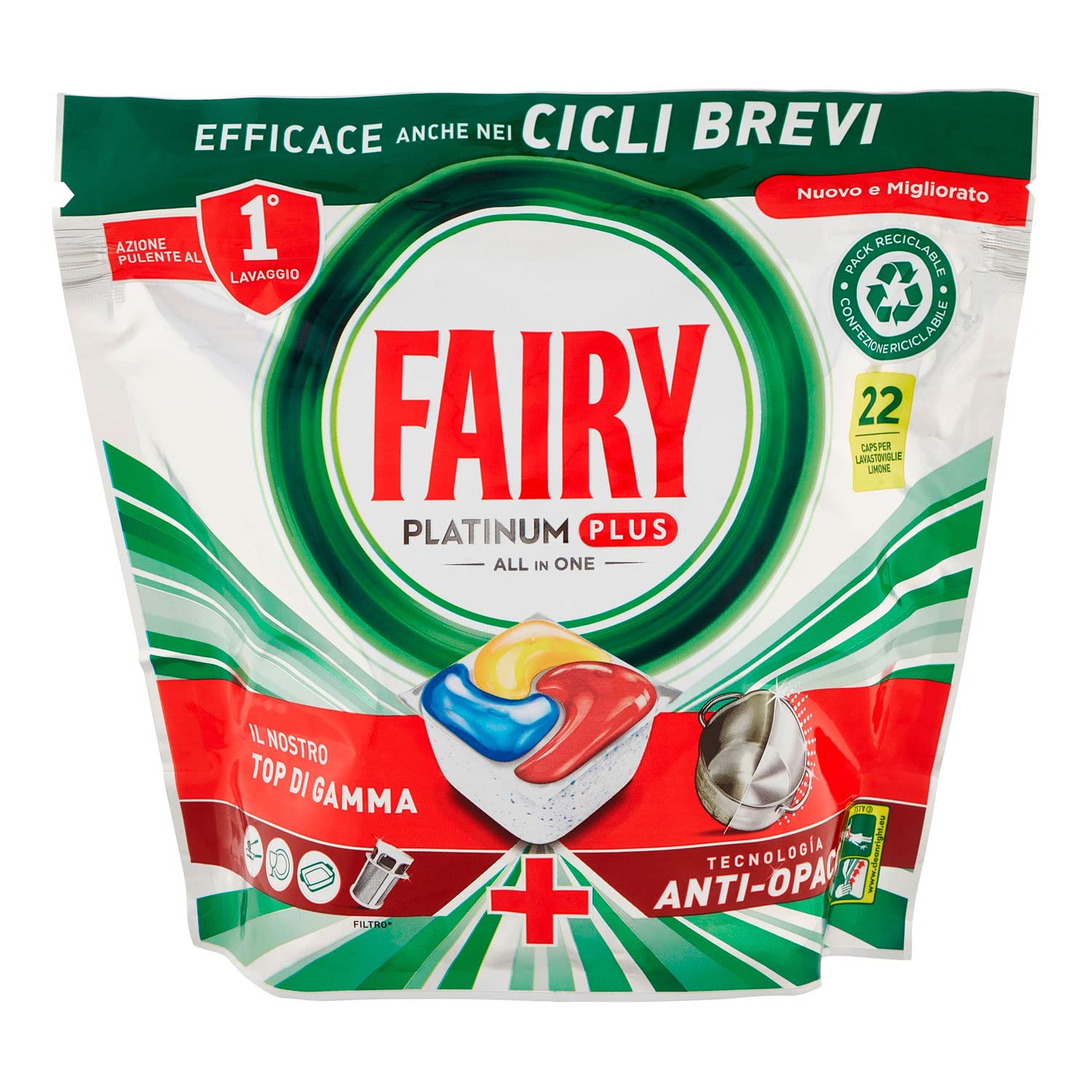 Fairy Tab Lavastoviglie Caps Platinu Plus Yelloe, Confezione da 22 Caps