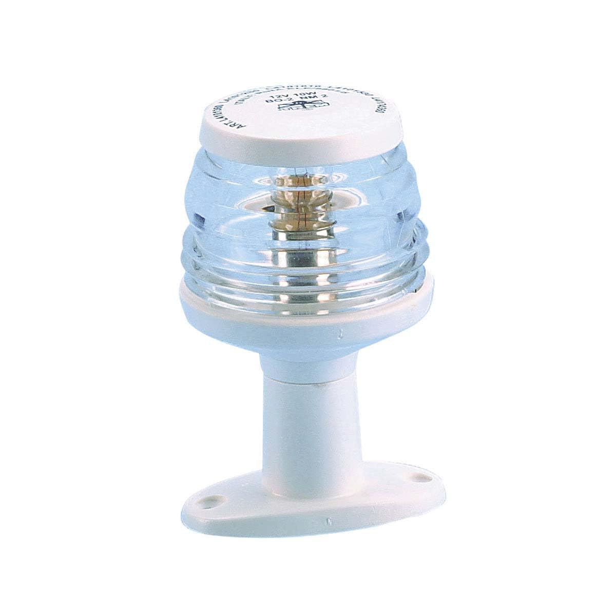 Dettagli: Fanale di fonda bianco *** Fanale di via luce bianca a 360° provvisto di basetta in plastica bianca per imbarcazioni inferiore a mt 20 omologato R.I.Na. Dim. alt mm 110.
