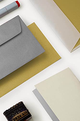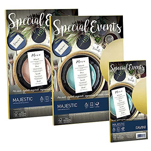 Dettagli: Busta gommata da 120 grammi in carta metallizzata Majestic dai riflessi brillanti e pregiati. Formato 110x220mm. Confezione da 10 buste.