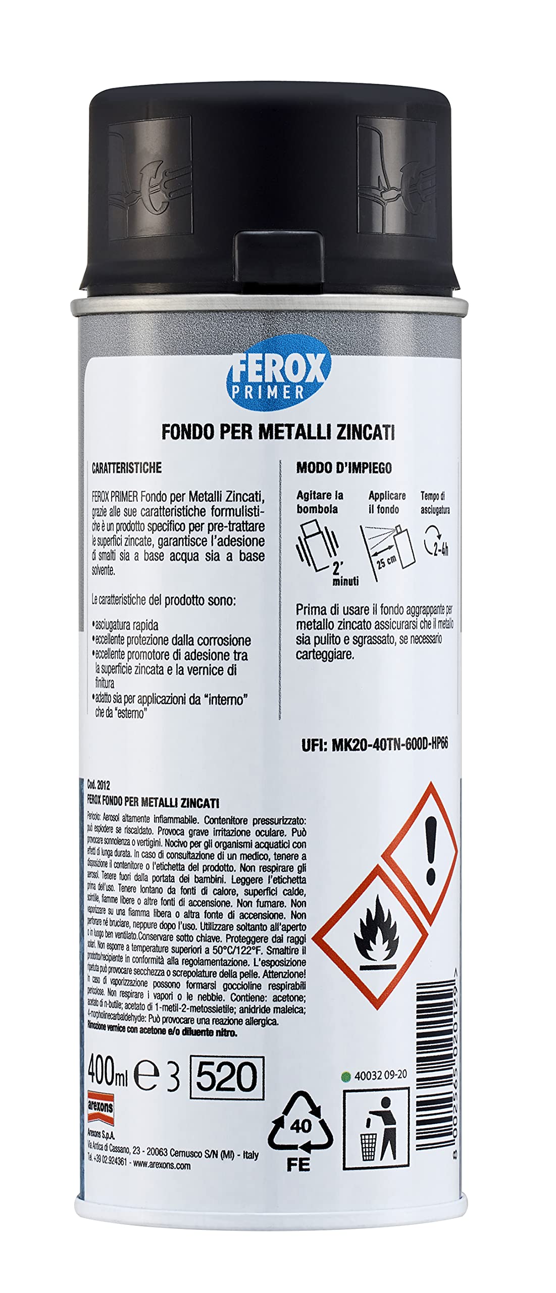 Dettagli: FEROX FONDO PER METALLI ZINCATI 400 ml, Ferox Primer per Metalli Zincati, adatto sia per interno che per esterno, crea un fondo aggrappante per metalli zincati, utile per migliorare l’adesione della vernice di finitura. Ideale per profilati e serrande. Sia per interno che per esterno Applicazione semplice e rapida essicazione Colore fondo: grigio. Ideale per profilati e serrande. Prevenzione corrosione, Elevata copertura e Lunga durata. FEROX PRIMER è una gamma costituita da 5 prodotti appositamente studiati per preparare al meglio le superfici ed esaltare le performance della successiva verniciatura.