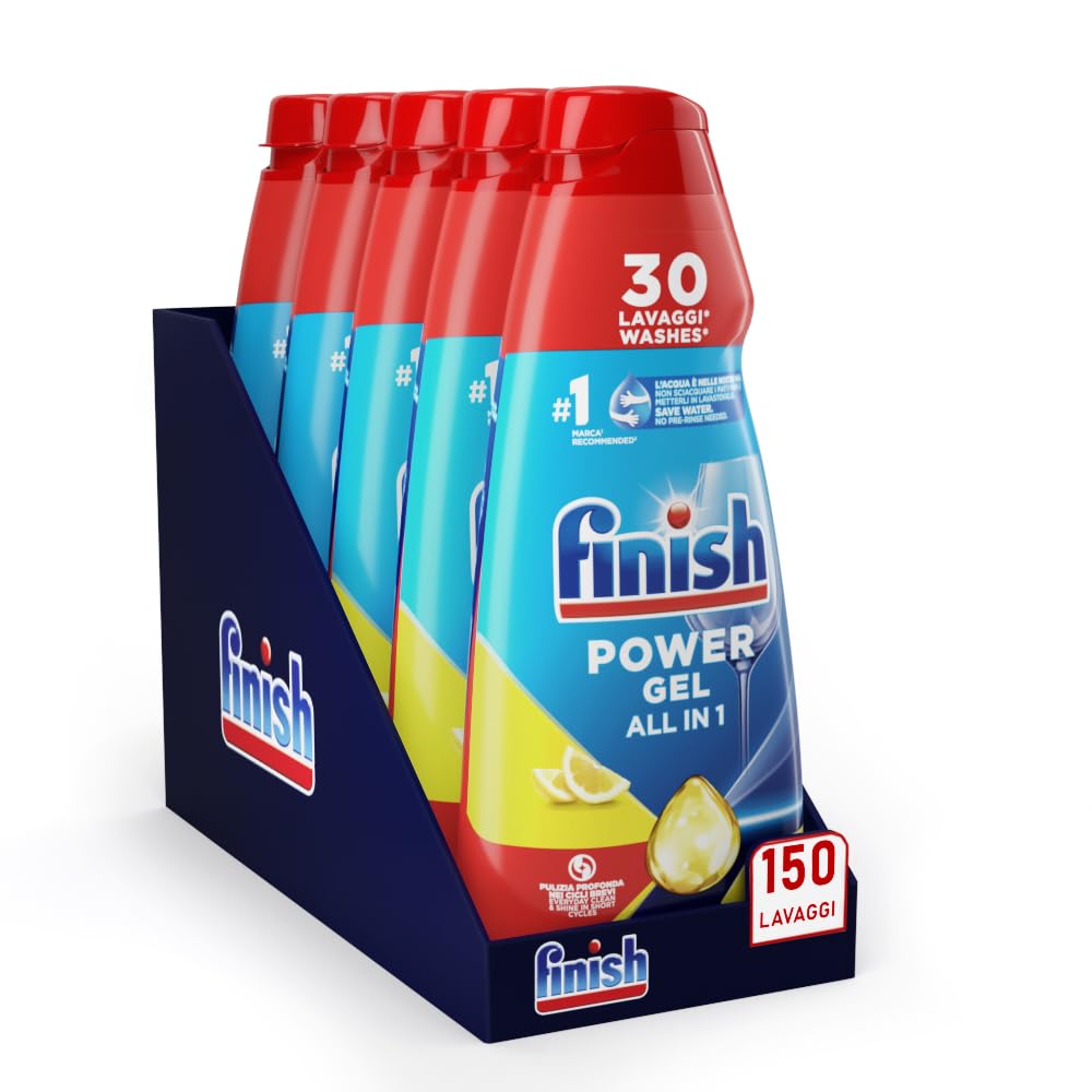 - LA CONFEZIONE - il pacco contiene 5 bottiglie da 30 lavaggi Finish All in 1 Max Powergel, Poteri Sgrassanti, Limone