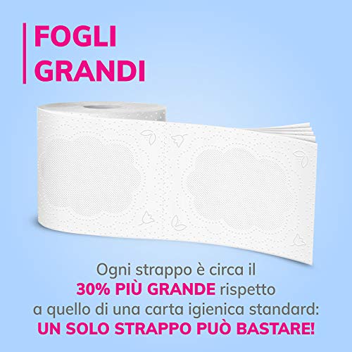 - Fogli grandi: ogni strappo è circa il 30% più grande di quello di una carta igienica standard, per questo un solo strappo può bastare!