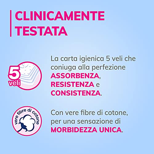 - 5 veli con vere fibre di cotone: per offrire il massimo in termini di assorbenza, resistenza, morbidezza, spessore e consistenza.