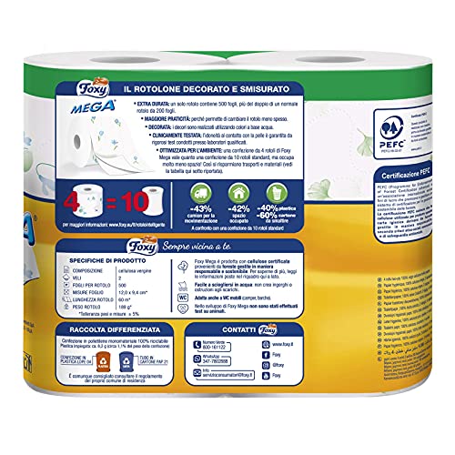 - Lunga durata: 12 rotoli Foxy Mega durano quanto 90 rotoli standard, assicurandoti convenienza, praticità e qualità.