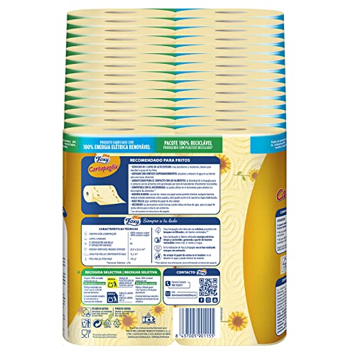 - Formato: 28 rotoli di asciugatutto 2 veli, con 60 strappi per rotolo e lunghezza totale 14 m per rotolo (tolleranza +/- 5%).