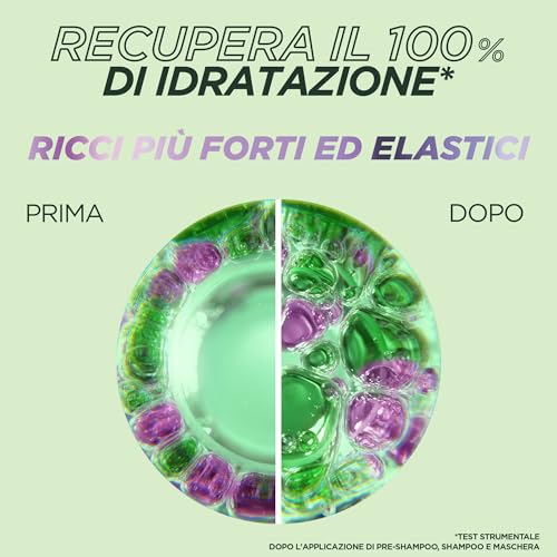 - Contenuto: 1x Garnier Fructis, Maschera Idratante, Per Capelli Ricci, Ricci Morbidi, Idratati e Definiti, Con Acido Ialuronico e Burro di Karité, Metodo Ricci, 370 ml