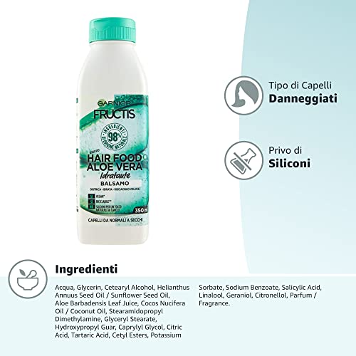 - Contenuto: 1x Balsamo Hair Food Garnier, Aloe Idratante, Formula di origine naturale al 98% e senza siliconi, 350 ml