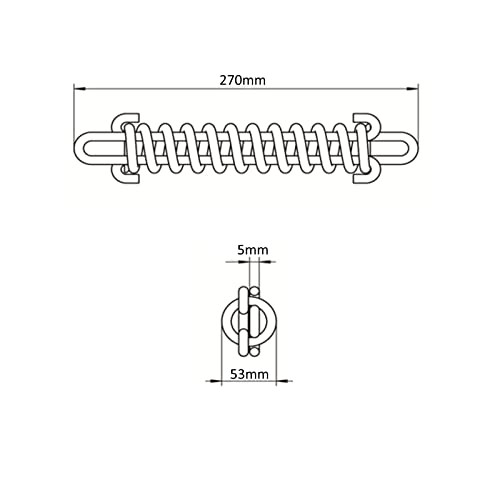 - Lunghezza: 270 mm; spessore filo: 5 mm; diametro totale: 53 mm
