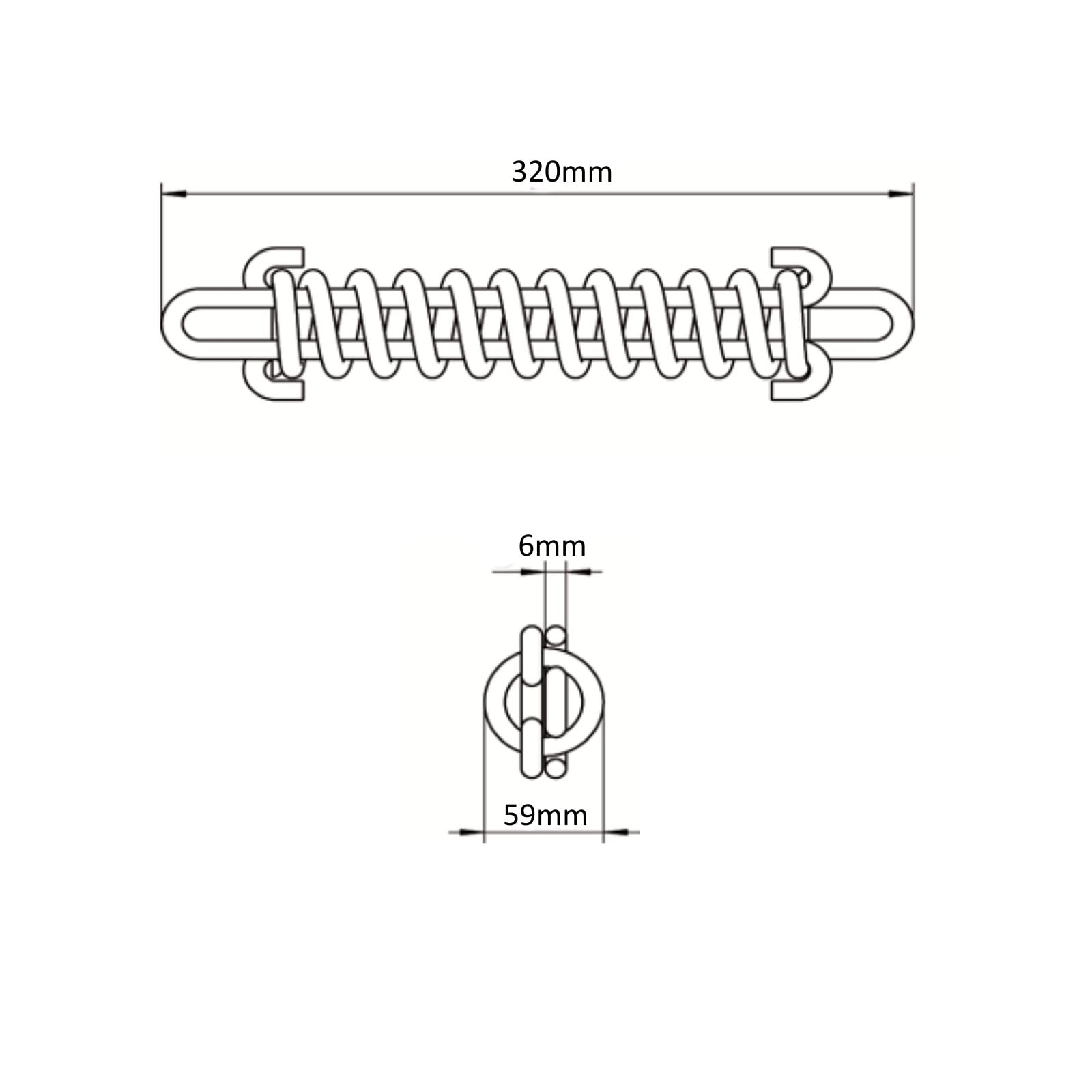 Dettagli: 2 pezzi. Molla di ancoraggio o ammortizzatore in acciaio inox. Produttore: Inoxmare Codice articolo: 8161,81610800004 Dimensioni: 6 x 320 mm Dettagli: Ammortizzatore per barche fino a 8/10 metri (max. 3300 kg). Aiuta a evitare urti e rimbalzo tra barca e ponticello o kai o ad attenuare fortemente Protegge in modo che la torsione e i raccordi siano a bordo. Materiale: acciaio inox (A2/AISI 304), non arrugginisce nell'acqua dolce Qualità molto solida. Lunghezza: 320 mm Spessore filo: 6 mm Diametro totale: 59 mm Ulteriori dettagli: vedere le misure indicate nell'immagine 2. Peso: 620 g ciascuno.
