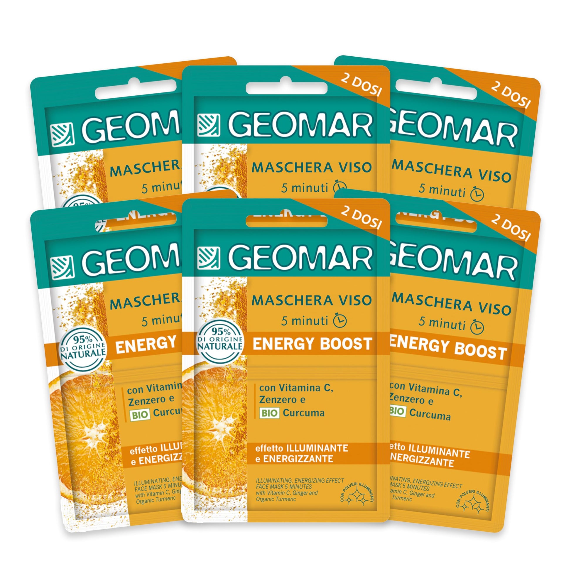 GEOMAR | Maschera Viso Energy Boost, Effetto Illuminante e Energizzante, 5 minuti, 95% di Origine Naturale, Dermatologicamente Testata, Made in Italy, 6 x 15 ml