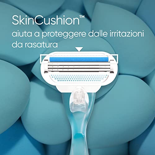 - *50% di protezione in più*: La tecnologia Venus SkinCushion aiuta a proteggere la pelle dalle irritazioni della rasatura ad ogni rasatura *dopo un mese, rispetto alla striscia lubrificante senza SkinCushion