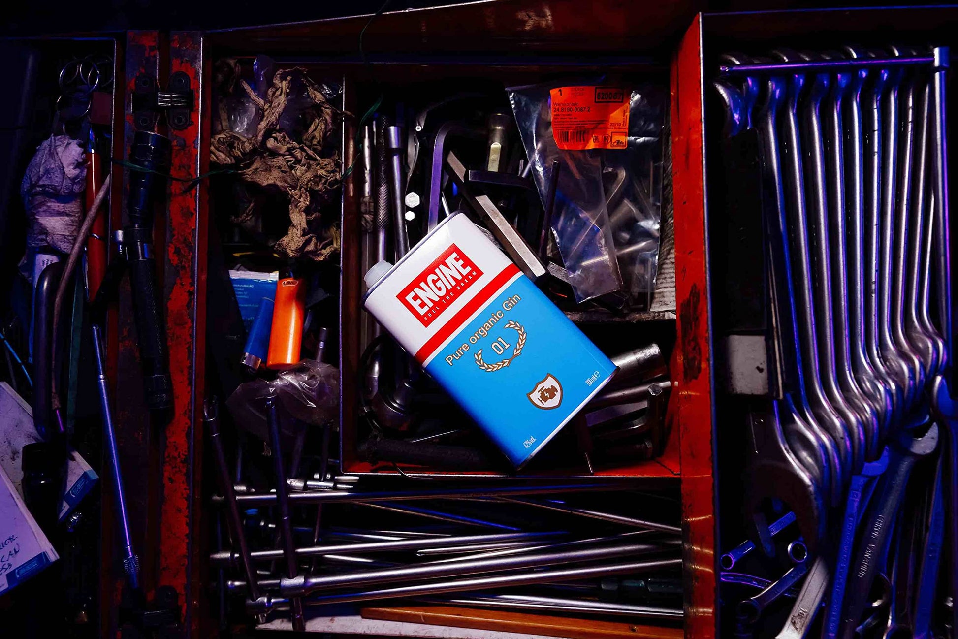 GIN ENGINE PACK, nr.1 latta Engine cl.50 + nr.6 Bicchieri in metallo + nr.1 Ice Bucket in metallo,il gin delle Langhe,"Pure Organic Gin",il gin artigianale 100% italiano e biologico,il Gin in Tanica