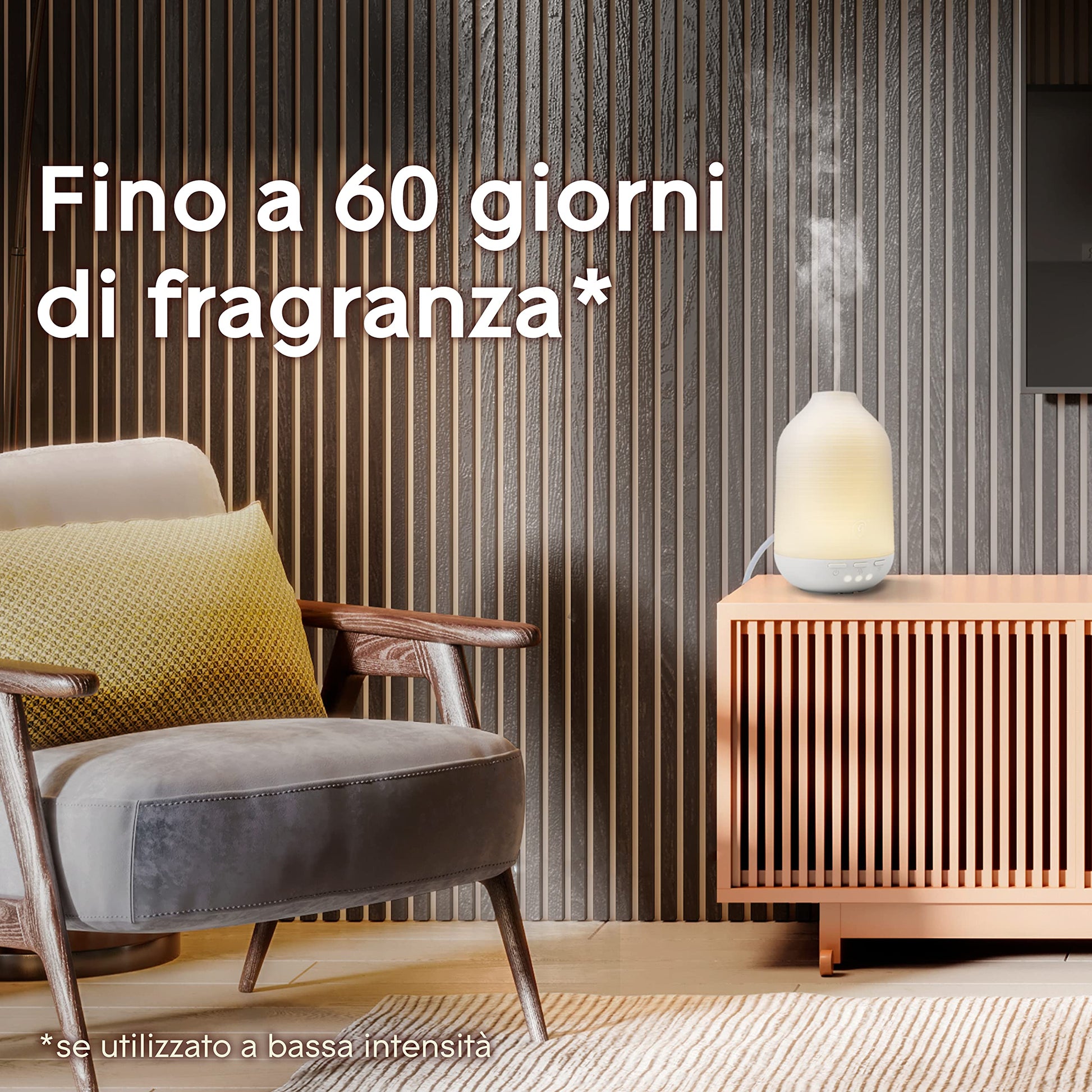 - Fino a 60 giorni* di fragranza grazie alla tecnologia dual-wick e alla facile ricarica in un click. (*se utilizzato a bassa intensità)
