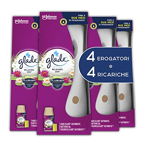 Dettagli: Descrizione Sentiti a tuo agio ogni qualvolta entri in una stanza. La formulazione unica del deodorante per ambienti glade automatic spray dona alla tua casa un'immediata sensazione di freschezza: scegli tra un'ampia gamma di fragranze. Indicazioni Impostazione del timer: scegliere la frequenza di nebulizzazione della fragranza selezionando una delle tre impostazioni (9, 18 o 36 min). Per un'ulteriore esplosione di freschezza, premere il pulsante sul retro ogni volta che si desidera. Dura fino a 60 giorni con l'impostazione a 36 min. Inserire in modo corretto (+/-). Non ricaricare. Non aprire la batteria o gettarla nel fuoco. Ciò può causare esplosioni, perdite o danni. Utilizzare solo batterie di tipo"AA". IMPORTANTE: tenere sempre l'unità in direzione opposta rispetto al viso. Avviso di sicurezza Aerosol estremamente infiammabile. Contenitore pressurizzato: può scoppiare se riscaldato. Provoca grave irritazione oculare. In caso di consultazione di un medico, tenere a disposizione il contenitore o l'etichetta del prodotto. Tenere fuori dalla portata dei bambini. IN CASO DI CONTATTO CON GLI OCCHI: sciacquare accuratamente per parecchi minuti. Togliere le eventuali lenti a contatto se è agevole farlo. Continuare a sciacquare. Se l'irritazione degli occhi persiste, consultare un medico. Proteggere dai raggi solari. Non esporre a temperature superiori a 50 °C/122 °F. Tenere lontano da fonti di calore, superfici calde, scintille, fiamme libere o altre fonti di accensione. Non fumare. Non vaporizzare su una fiamma libera o altra fonte di accensione. Non perforare né bruciare, neppure dopo I'uso. L'esposizione ripetuta può provocare secchezza o screpolature della pelle. Usare soltanto in luogo ben ventilato. Conservare in Iuogo fresco e asciutto. Le persone sensibili all'uso di profumo dovranno usare questo prodotto con cautela. I deodoranti per l'ambiente non sostituiscono le buone pratiche igieniche. Contiene: geraniolo, linalolo. Può provocare una reazione allergica.