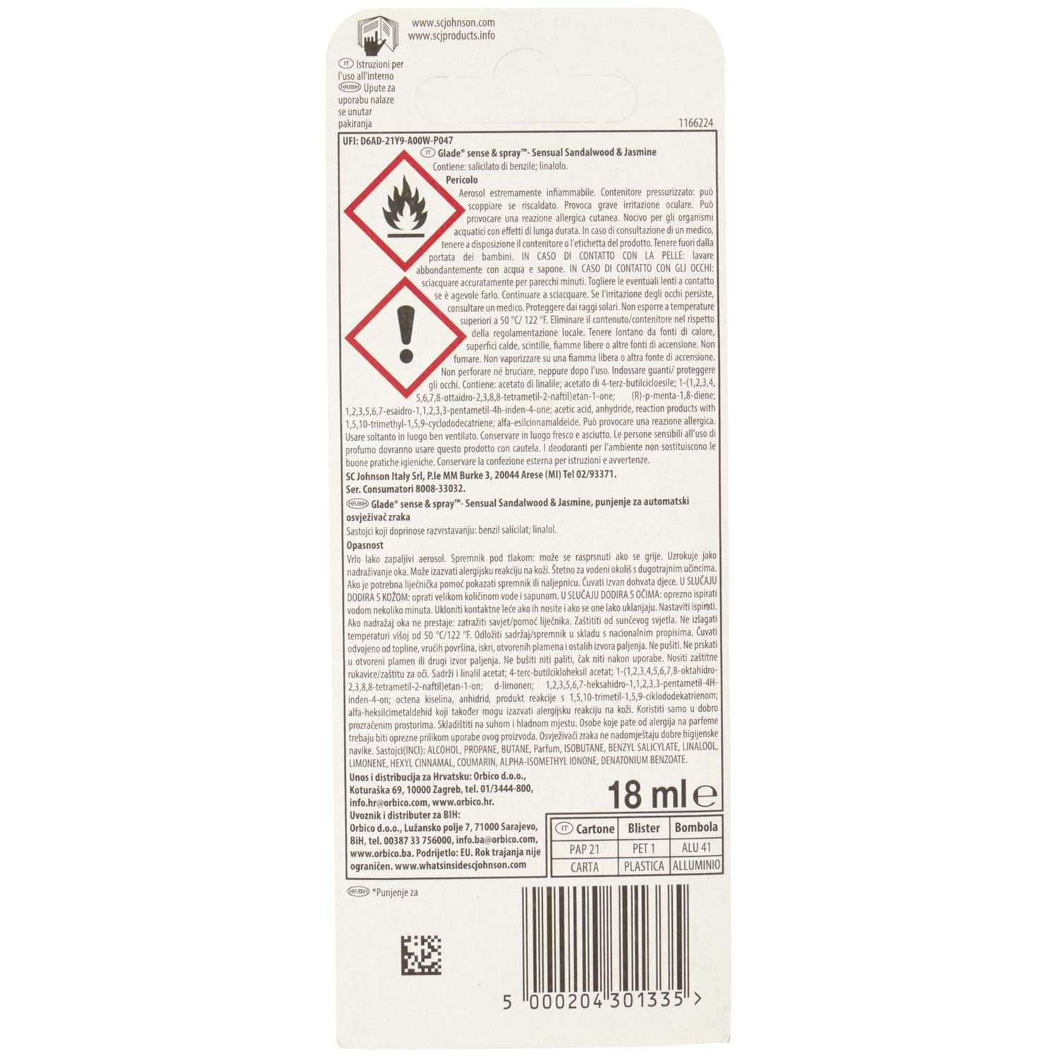Dettagli: Descrizione Descrizione Glade Deodorante Ambiente Elettrico Sense&Spray Ricarica Mix2, 18ml Avviso di sicurezza Solo per uso esterno. Evitare il contatto con gli occhi. Tenere lontano dalla fiamma nuda diretta o da fonti di calore.