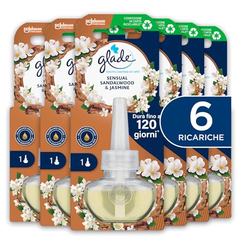 - Glade Essential Oil Elettrico Ricarica, profumatore per ambienti agli olii essenziali, fragranza Sandalo di Bali e Gelsomino. Confezione da 1 Ricarica.