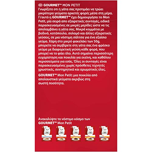 - Cibo per gatti Purina Gourmet Mon Petit Intense con Carni Delicate. Selezione prelibata con carne di Anatra, Pollo e Tacchino.