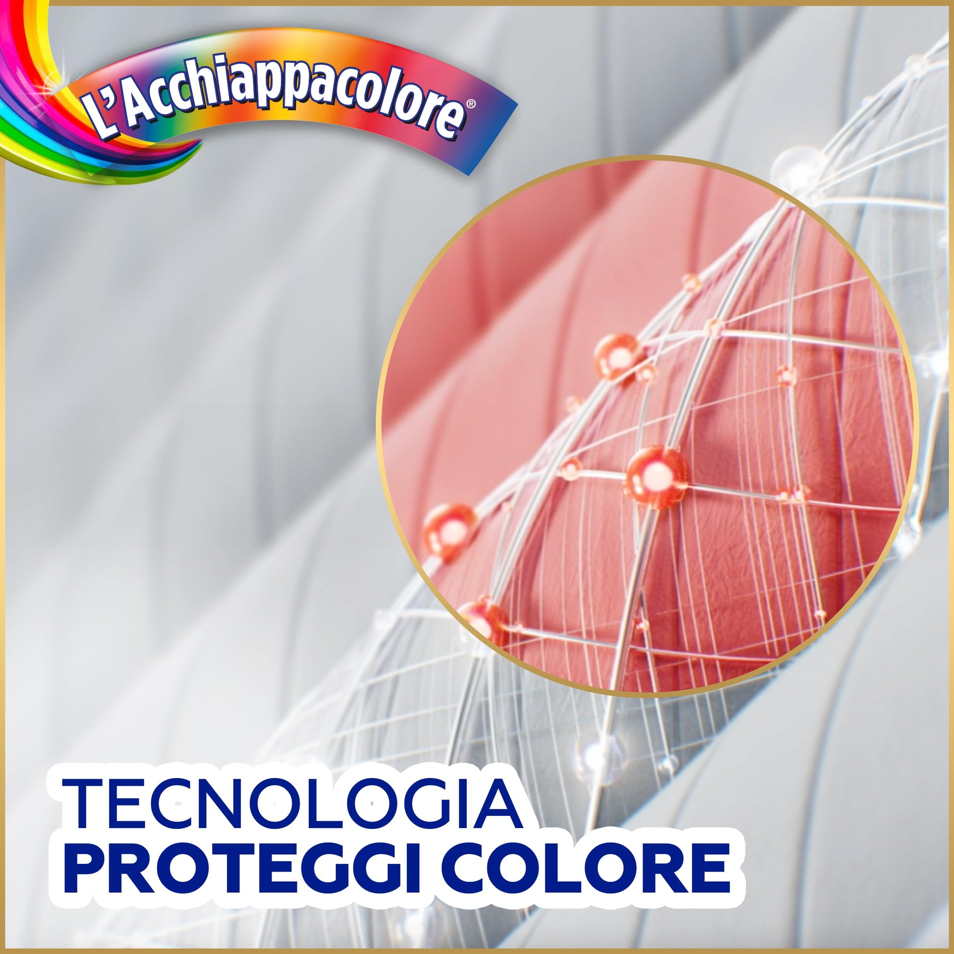 - Tecnologia Proteggi colore: i fogli L' Acchiappacolore conservano la brillantezza dei colori e proteggono i tessuti dall'ingrigimento, lavaggio dopo lavaggio