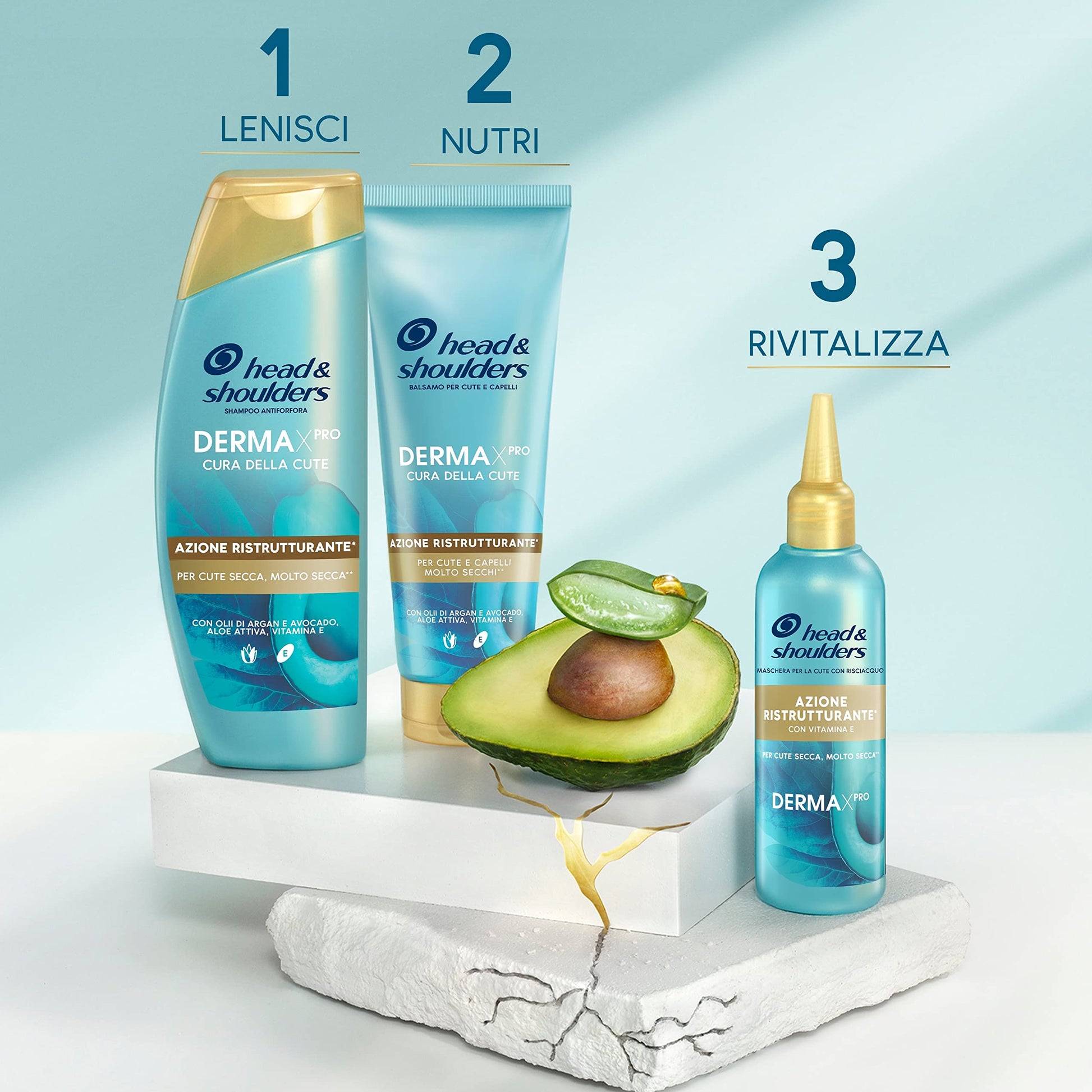 Head & Shoulders DERMAXPRO Shampoo Antiforfora Azione Ristrutturante Per La Cute Molto Secca, Con Olii Di Argan E Avocado, Aloe Attiva, Vitamina E, 225 ml