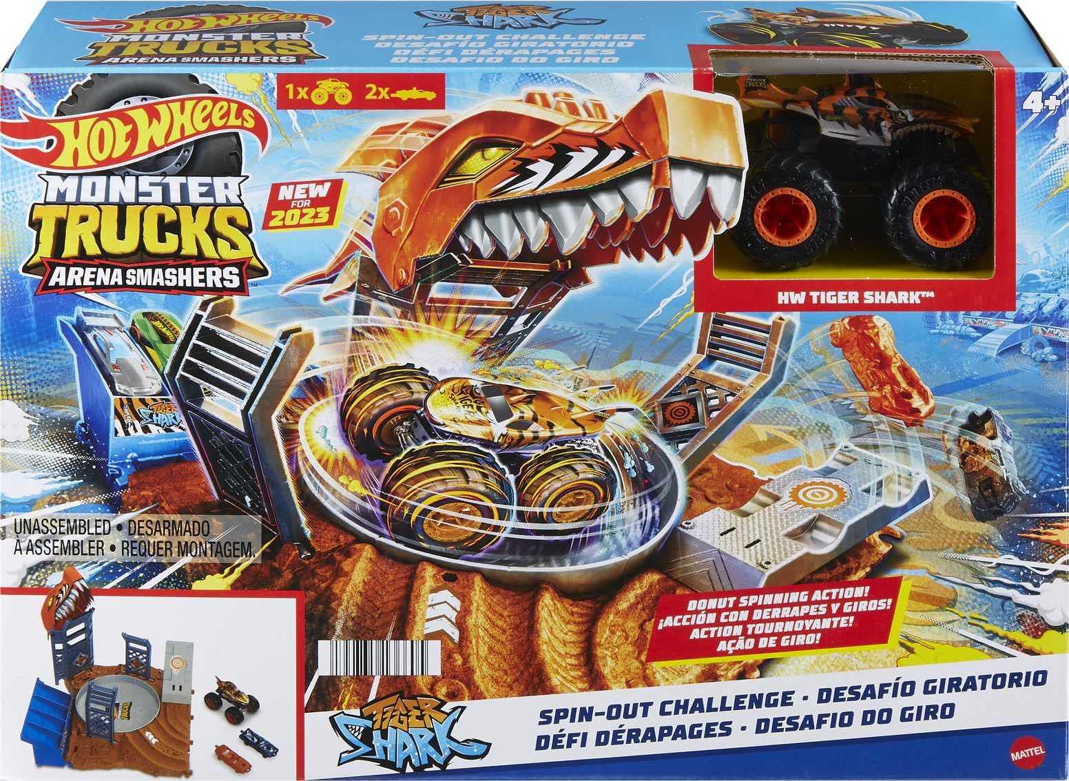 - Spazza via il famelico squalo che si staglia minaccioso sull'arena del playset Hot Wheels Monster Trucks Arena degli Scontri Sfida in Testacoda con Tiger Shark!