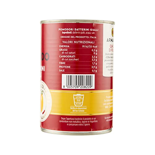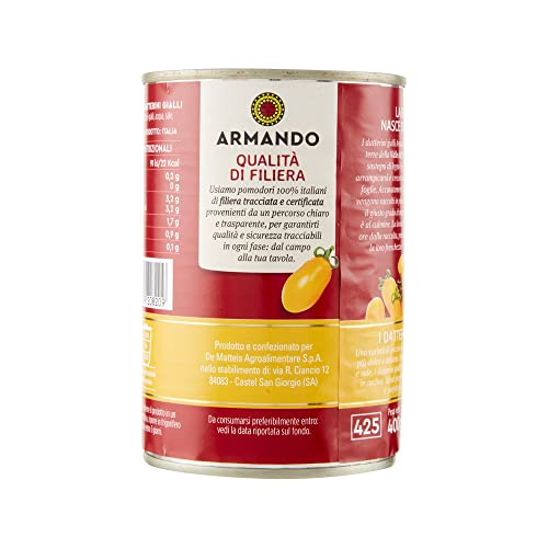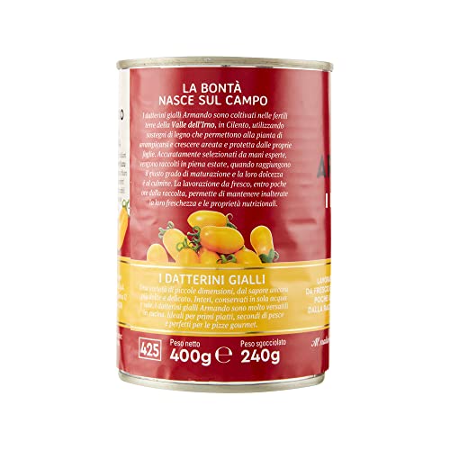 Dettagli: Descrizione I ROSSI DI ARMANDO 100% ITALIANI DI FILIERA TRACCIATA E CERTIFICATA La qualità di filiera ARMANDO si estende a I ROSSI: una nuova linea esclusivamente a base di datterini, tra le varietà di pomodori più pregiate e dolci. La Qualità dei prodotti ARMANDO si esprime attraverso valori di equità, sostenibilità e sicurezza alimentare. Oltre a garantire il completo tracciamento della materia prima dal campo alla tavola, i processi di lavorazione e trasformazione avvengono nel rispetto delle persone e dell’ambiente. LA PASSATA DI DATTERINI La consistenza finissima e vellutata, il sapore dolce e il profumo fresco di pomodoro appena colto, fanno della passata Armando il condimento ideale per la pasta e per ogni tua ricetta. Ingredienti: Passata di pomodori datterini, sale. Ingredienti Passata di pomodori datterini, sale. Indicazioni Da conservare in luogo fresco e asciutto.