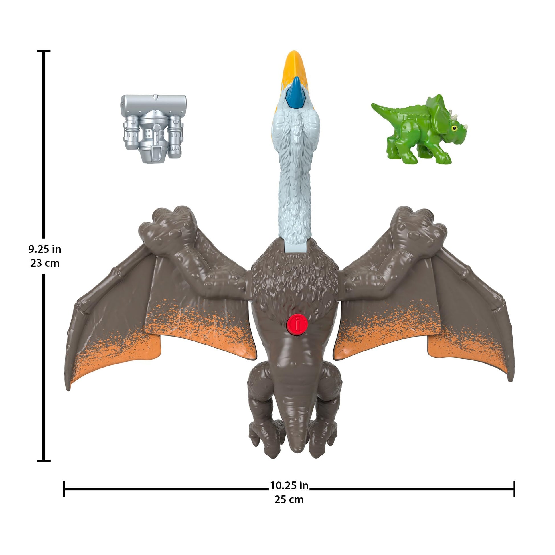 - Include un dinosauro quetzalcoatlus da 18 cm, un triceratopo in miniatura e 1 imbracatura