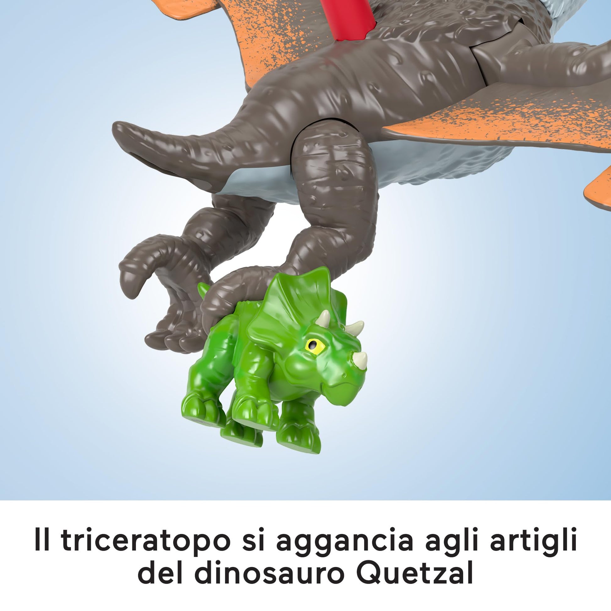 Imaginext Jurassic World Dominion - Quetzal Agguato in volo, dinosauro da 18 cm con ali mobili e accessorio imbracatura, triceratopo preda incluso, giocattolo per bambini, 3+ anni, HML44