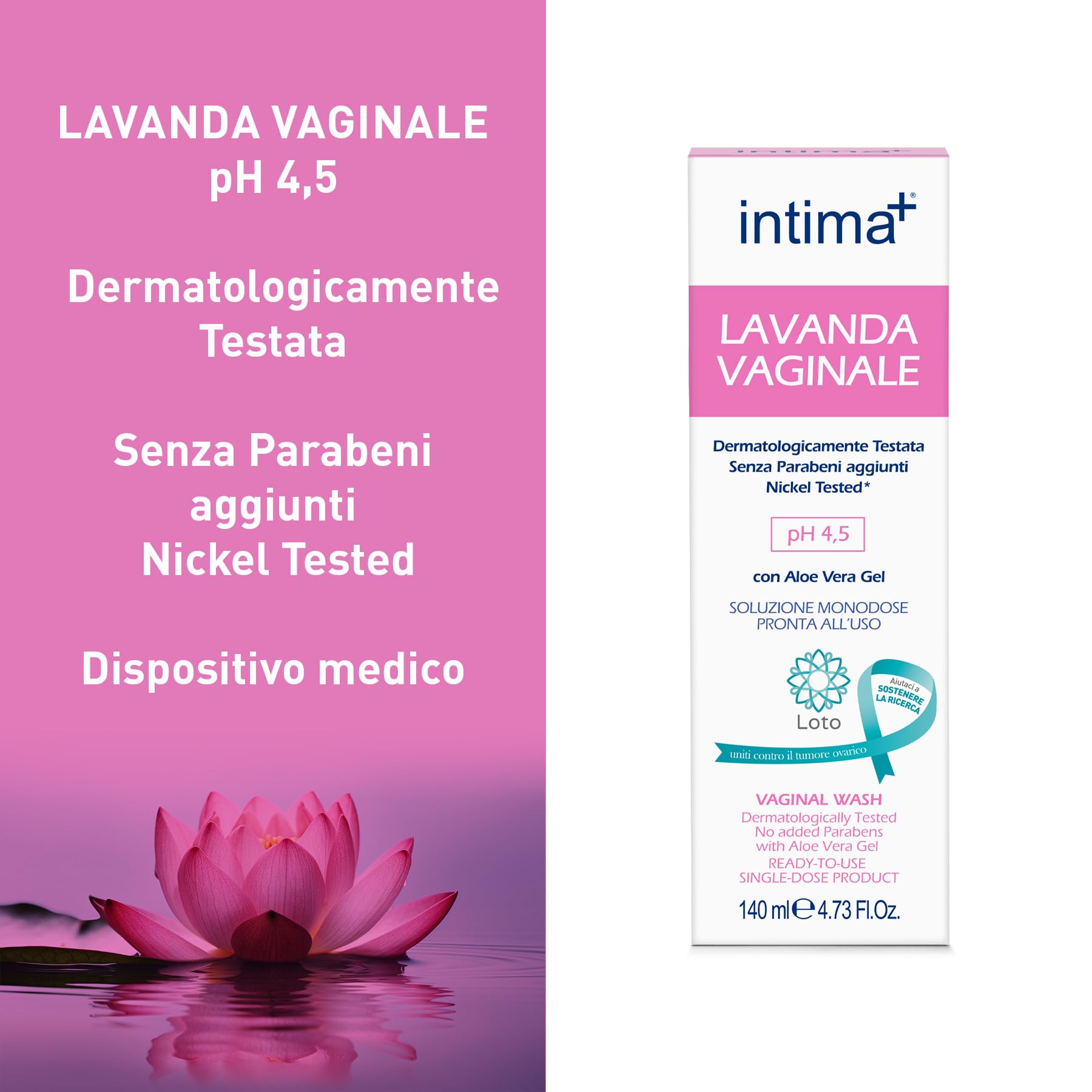 - LAVANDA VAGINALE: Intima+ Lavanda Vaginale è una soluzione pronta all’uso destinata ad essere introdotta nella cavità vaginale. É un dispositivo medico monouso, non sterile per uso temporaneo. Svolge un’azione coadiuvante proteggendo la mucosa vaginale e riequilibrando le difese naturali, utile anche nella fase post-ciclo.