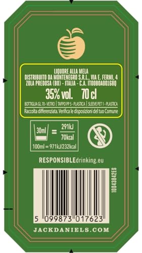 Dettagli: L’intera famiglia Jack Daniel’s è prodotta con una miscela di cereali di prima scelta composta dall’80% di mais, l’8% di segale e il 12% di orzo maltato. I cereali non maltati (mais e segale) vengono cotti a vapore per circa 3 ore nei “cookers”, enormi contenitori di rame. La distillazione avviene tramite un processo continuo in “Patent Still”: un distillatore di rame a colonna alto 100 piedi. I lieviti derivano da ceppi pregiati e selezionati di proprietà delle distillerie Jack Daniel’s. L’acqua utilizzata per la produzione e stabilizzazione è uno degli ingredienti più importanti, in grado di influenzare in modo determinante il gusto del whiskey, e proviene dalla Cave Spring Hollow, la limitrofa sorgente di proprietà.