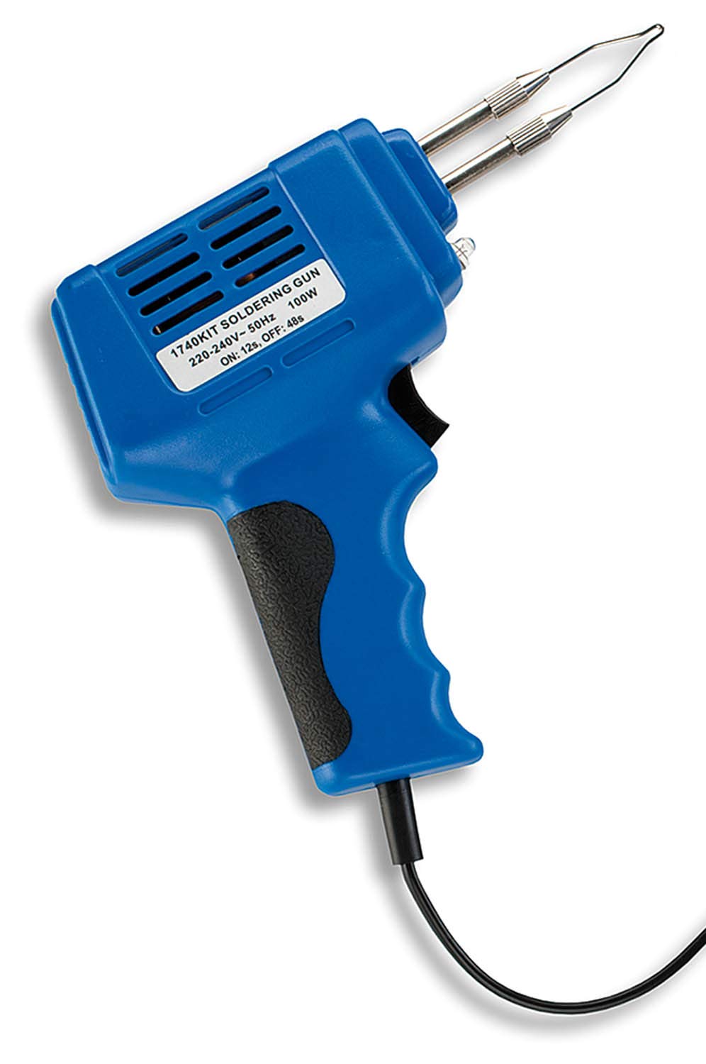 Dettagli: Saldatore elettrico a pistola istantaneo pronto per l’uso. Impugnatura ergonomica. Alimentazione 220 Volt. Potenza 100W. Ideale per lavori di stagnatura e brasatura di circuiti elettrici. Dotato di pratica valigetta portatile. Sono incluse nella confezione 3 punte di ricambio, stagno e pasta per saldare.