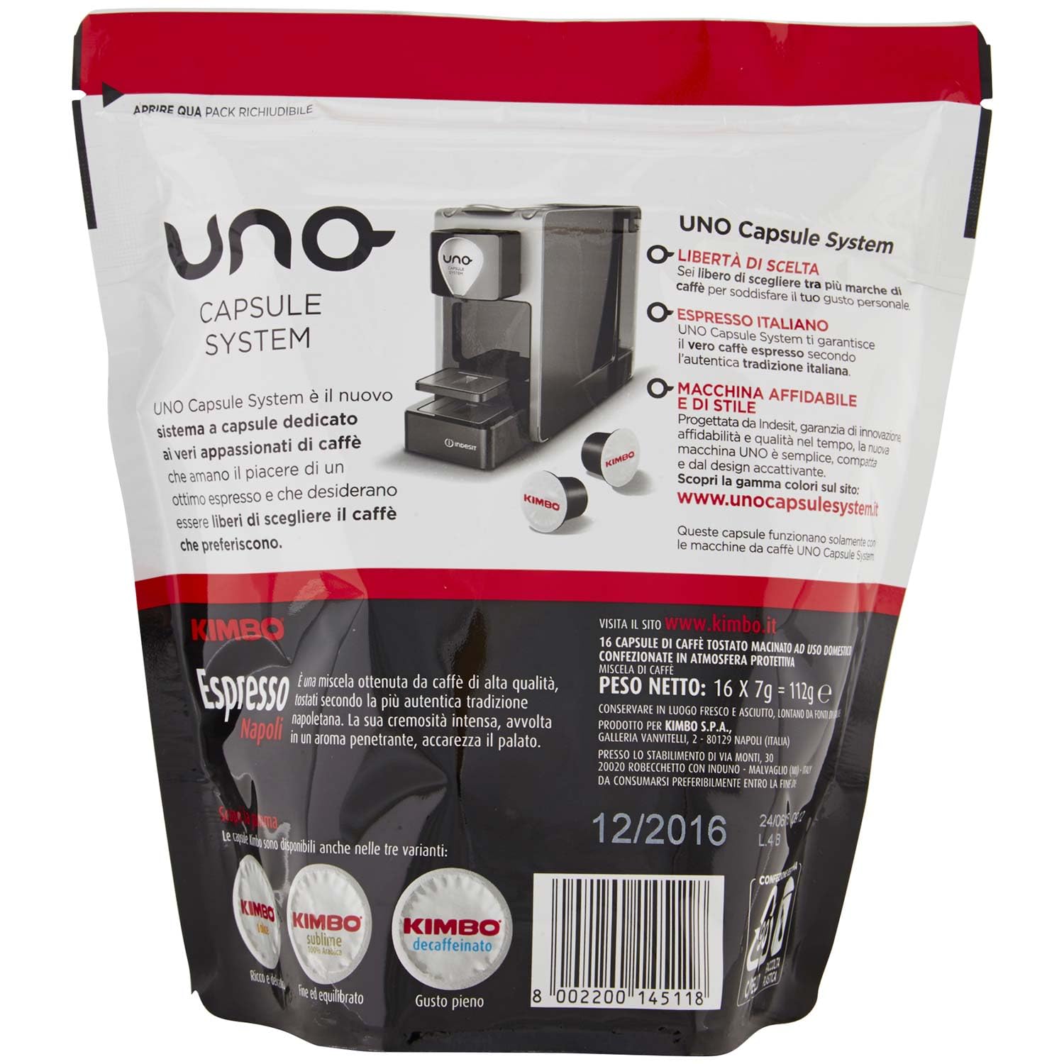 Dettagli: Descrizione prodotto UNO 16CAPS G.NAPOLI Indicazioni Inserire una capsula Kimbo nel dispositivo e premere il pulsante di erogazione