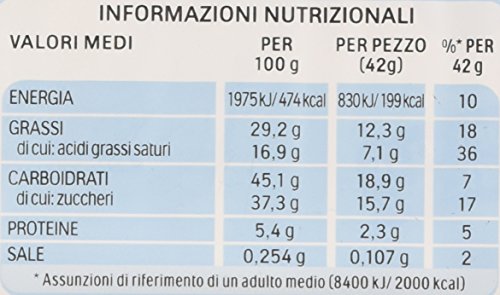 Dettagli: Descrizione prodotto Kinder Delice Cacao 2 confezioni da 10 pezzi da 42 g 20 pezzi da 840 g Ingredienti zucchero, grassi vegetali (palma, karitè, sal), LATTE in polvere reidratato (10%), UOVA, farina di FRUMENTO (7,5%), sciroppo di glucosio-fruttosio, LATTE scremato in polvere (5%), cacao magro (3%), cacao (2%), siero di LATTE in polvere, aromi, emulsionanti: lecitine (SOIA), mono e digliceridi degli acidi grassi; agenti lievitanti (carbonato d'ammonio, carbonato acido di sodio), succo di limone concentrato, siero di LATTE concentrato, sale.