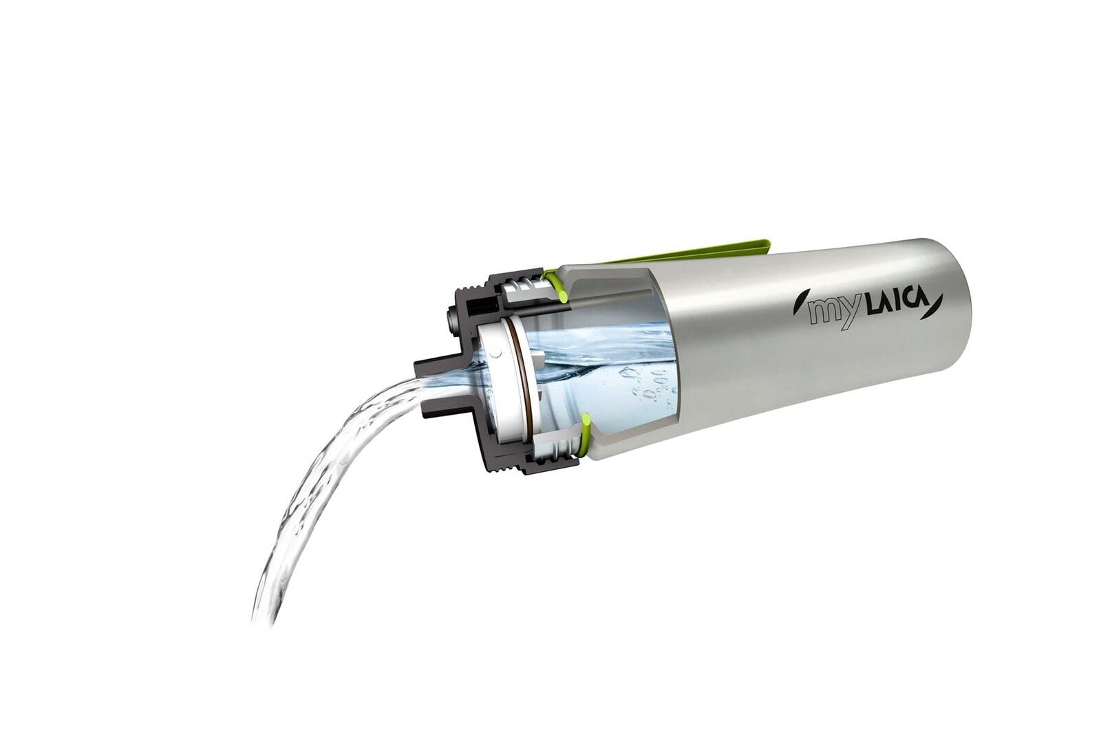 Laica MyLaica Botella Personal Deportiva, 0,5 L, Acero Inoxidable, filtrante, Cromado/Verde