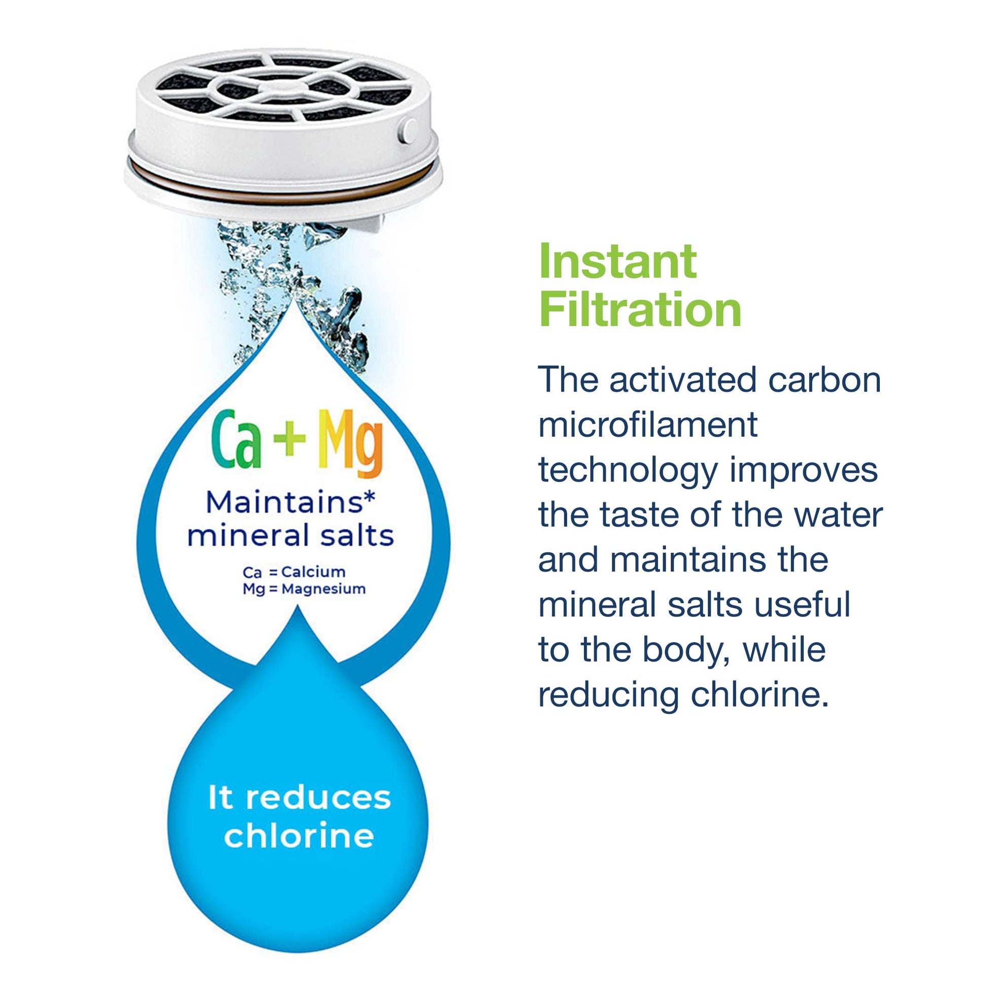 - Grazie ad ogni singolo filtro FAST DISK l’acqua viene filtrata immediatamente fino a circa 120 L al mese, riducendo il cloro e mantenendo i sali minerali