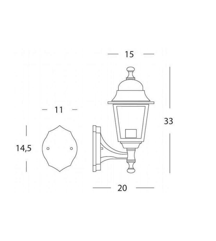 Lanterna A Parete Montante Struttura In Alluminio Pressofuso. Verniciata Nera. Dimensioni: Cm 15X20Xh33.