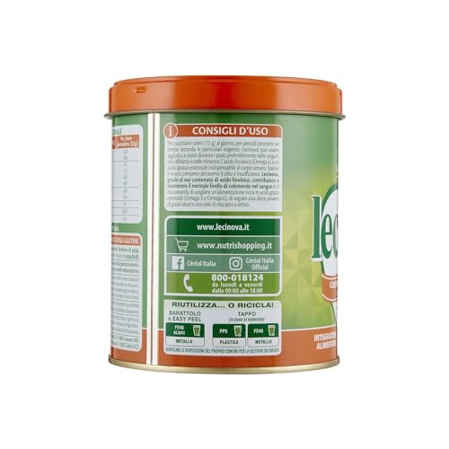 - CON OMEGA 6: la lecitina Lecinova contiene acido linoleico, cioè Omega 6, un acido grasso polinsaturo indispensabile per il benessere dell'organismo