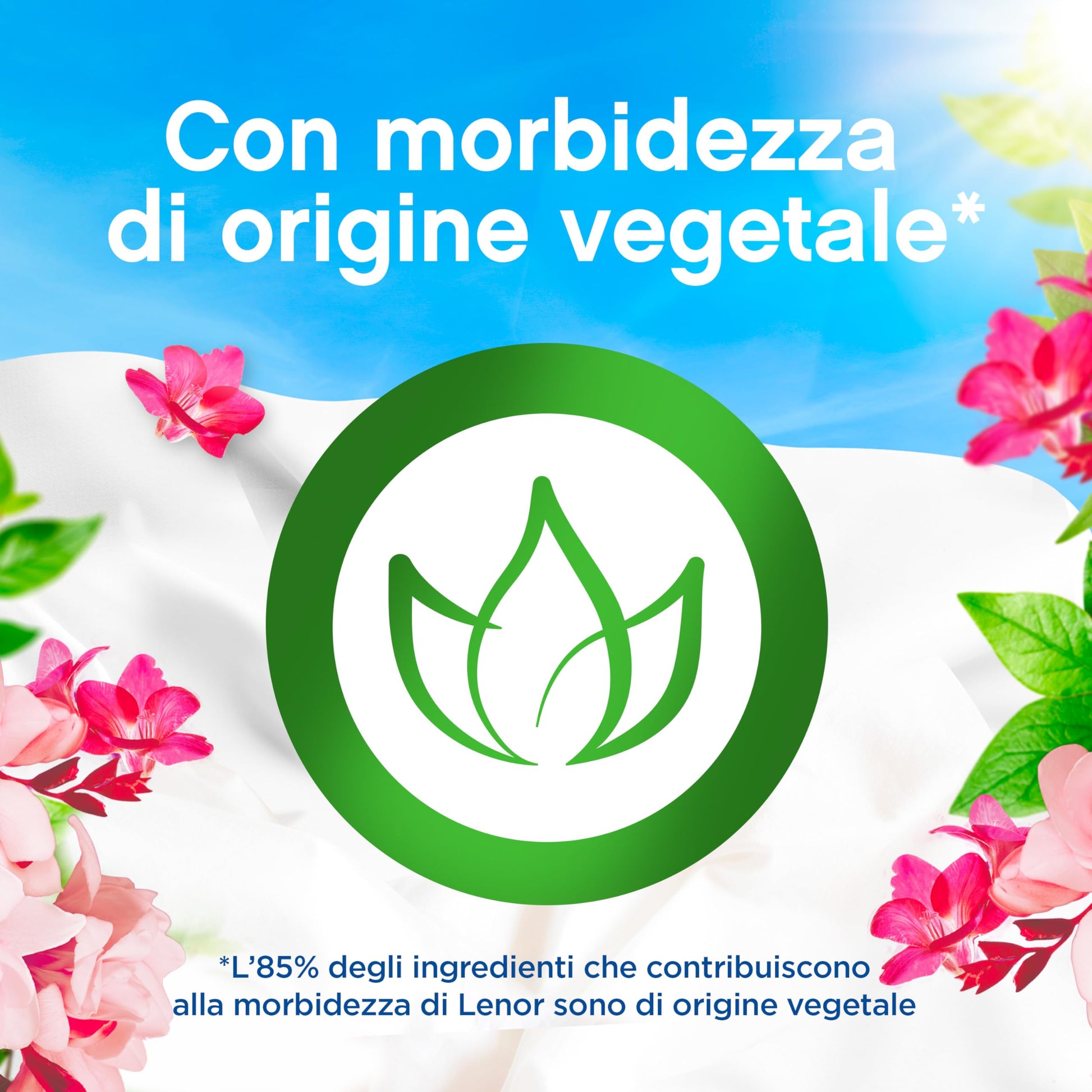 - "MORBIDEZZA DI ORIGINE VEGETALE: L'85% degli ingredienti che contribuiscono alla morbidezza di Lenor sono di origine vegetale"