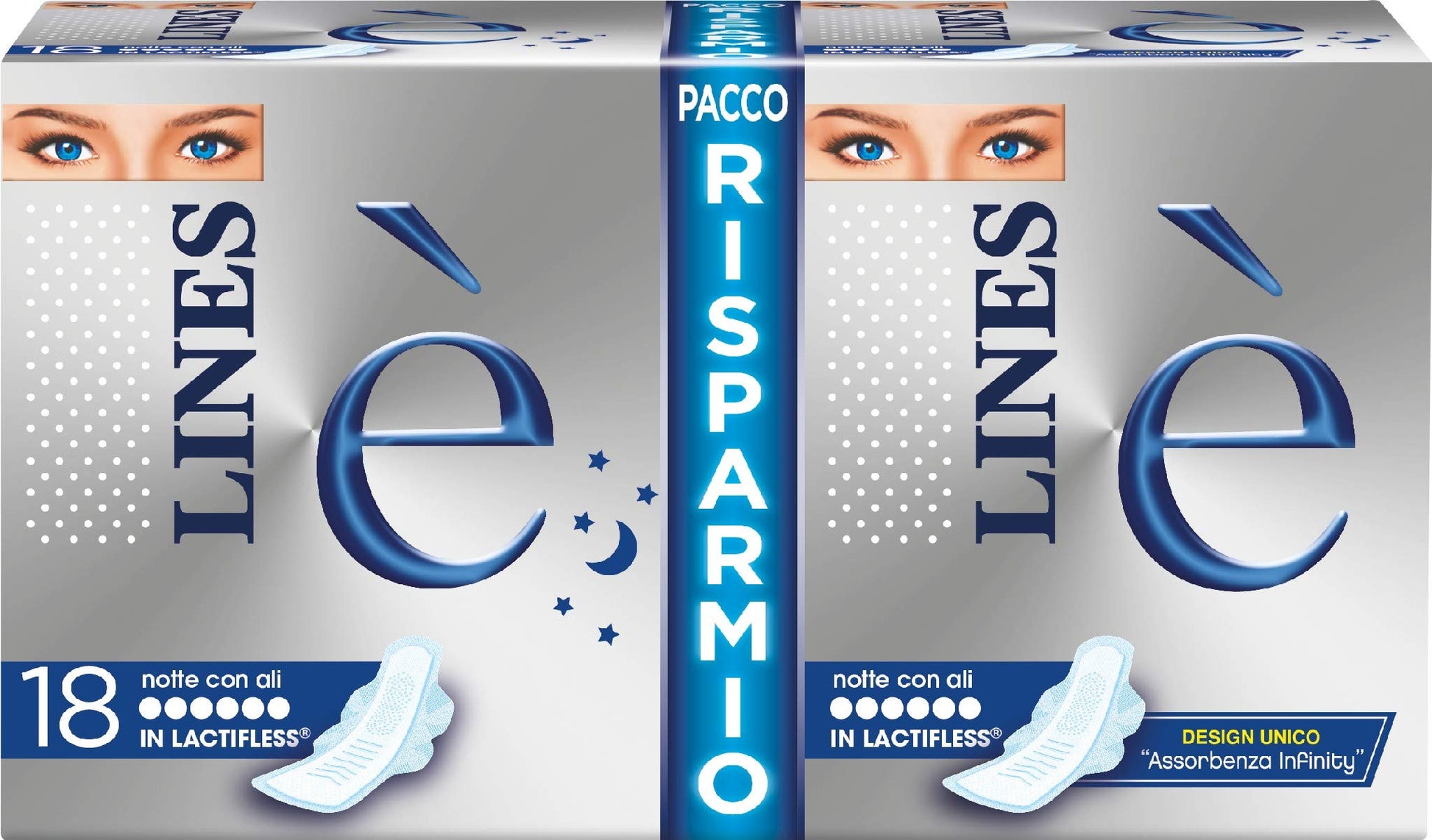 Dettagli: Lines è, l'unico assorbente in lactifless che conferisce prestazioni eccezionali: il nuovo LINES è assorbe il doppio rispetto agli assorbenti Ultra più venduti.