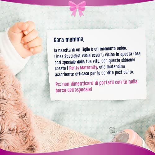 Dettagli: Descrizione La linea Lines Specialist Maternity è stata appositamente creata per le mamme che hanno appena partorito. Le Mamme che hanno provato i Pants Maternity nei giorni immediatamente successivi al parto li hanno ritenuti molto adatti alle perdite post parto. Infatti, queste mutandine assorbenti garantiscono sostegno all'addome senza stringere come aiuto in più per farti sentire protetta: sono soffici come cotone e dal design femminile. Comodi e pratici, si tolgono facilmente dopo l'uso strappando la cucitura laterale. Ottimali da portare con te nella borsa per l'ospedale! Grazie al loro strato a rapido assorbimento, ti fanno sentire a tuo agio con te e con gli altri. E, inoltre, hanno un filtrante a contatto con la pelle dermatologicamente testato. Indicazioni Per utilizzare le mutandine post-partum Lines Specialist, disimballarle e indossarle come biancheria intima normale. Le mutandine sono dotate di un filtro a contatto con la pelle, dermatologicamente testato, che aiuta ad assorbire rapidamente le perdite. Per rimuovere le mutandine, basta tirare la cucitura laterale. Avviso di sicurezza Per utilizzare le mutandine Lines Specialist dopo il parto, disimballarle e indossarle come biancheria intima normale. Le mutandine sono dotate di un agente filtrante dermatologicamente testato, che aiuta ad assorbire rapidamente le perdite. Per rimuovere le mutandine, basta tirare la cucitura laterale.