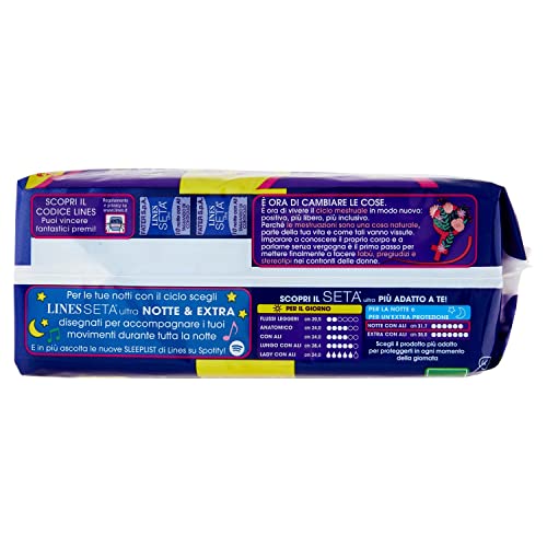 Dettagli: Descrizione LINES seta ultra è l'assorbente che offre l'asciutto pulito n°1 in italia. il nuovo "strato assorbilampo" saldato al filtrante cattura e distribuisce in un lampo il liquido a tutta superficie. l'esclusiva molecola antiodore n3 intercetta, cattura e riduce a zero l'odore. LINES seta ultra notte è il più lungo e il più assorbente dei LINES seta: asciutto e pulito per la notte, extraprotezione per il giorno. Indicazioni 1. Apri la confezione e rimuovi delicatamente l'assorbente. 2. Assicurati che l'ala adesiva sia allineata con la parte interna dell'indumento intimo. 3. Premi fermamente l'ala adesiva sull'indumento intimo per una buona adesione. 4. Cambia l'assorbente quando è necessario o al massimo ogni 4-6 ore. 5. Per la rimozione, solleva delicatamente un'ala, quindi l'altra, e gettalo via in modo sicuro e igienico. 6. Lavati sempre le mani prima e dopo la manipolazione dell'assorbente.