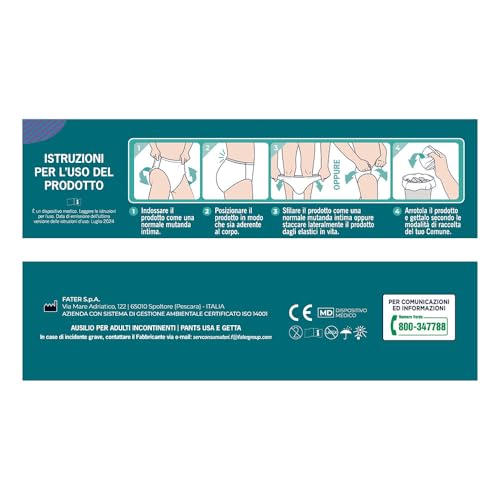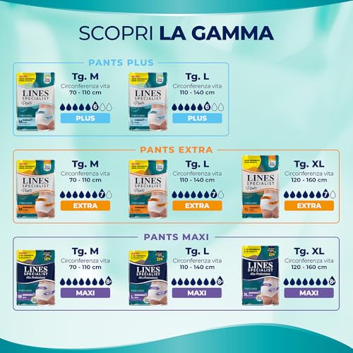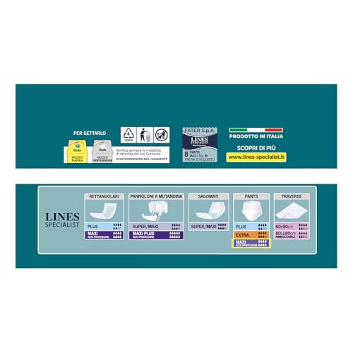 Dettagli: Descrizione I Pants Lines Specialist Alta Protezione Maxi sono mutandine assorbenti per uomini e donne che hanno bisogno di Alta Protezione. Grazie al morbido rivestimento, risultano delicati a contatto con la pelle. II loro design garantisce un'elevata assorbenza fino a 12 ore, riducendo il numero di cambi e rendendoli adatti sia per il giorno che per la notte. Inoltre, la particolare struttura a strati blocca il liquido in profondità e lo tiene lontano dalla pelle, così il corpo resta asciutto offrendoti tutta la sicurezza e il benessere di cui hai bisogno. Questi ausili per perdite di urina hanno un'elevata vestibilità: il design, studiato per essere anatomico e discreto, permette al prodotto di adattarsi perfettamente al tuo corpo. Sono caratterizzati anche dall'esclusiva Tecnologia Zero Odore con tripla azione, studiata per intercettare, bloccare e neutralizzare l'odore per una elevata discrezione! Ipoallergenici e dermatologicamente testati, rispettano il naturale equilibrio della pelle. Indicazioni Indossare la protezione contro l'incontinenza di notte ("La Notte") e cambiarla ogni giorno. Smaltire i pantaloni protettivi usati igienicamente.