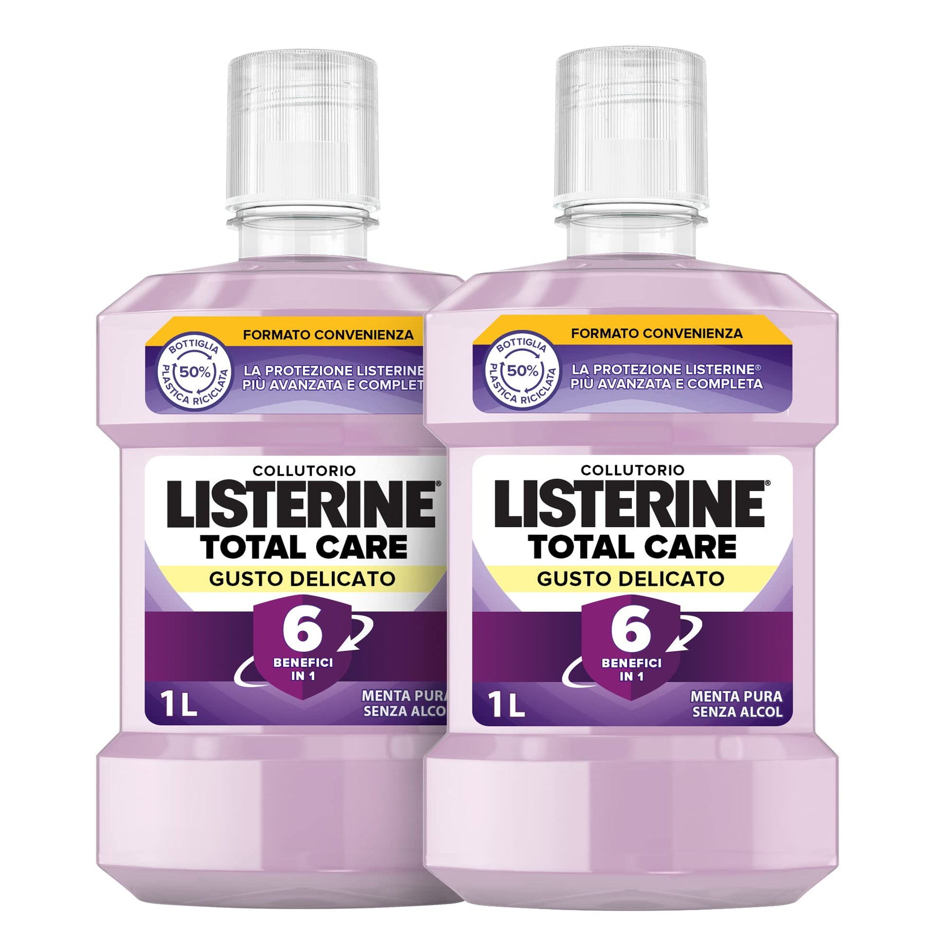 LISTERINE Collutorio, Total Care, Gusto Delicato, 6 Benefici in 1, Menta Delicata, Zero Alcol, Alito fresco - 2 x 1 L