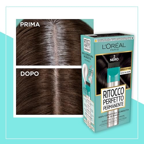 - Contenuto: 1x L'Oréal Paris Colorazione Ritocco Perfetto Permanente, Copre 100% della Ricrescita, In Soli 10 minuti, Fino a 4 Settimane, Colore: Nero