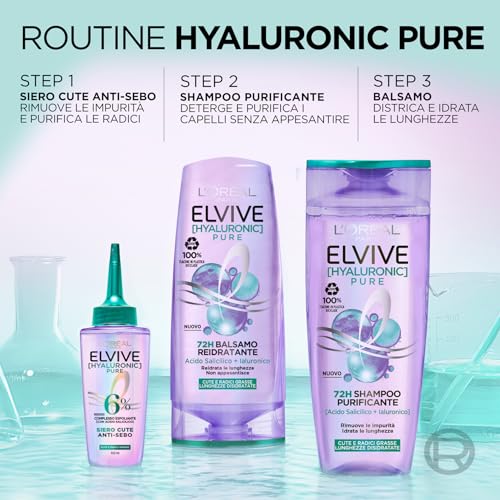 - Contenuto: 1x L'Oréal Paris Elvive Siero Anti-Sebo, Per Cute e Radici Grasse, Azione Purificante, Cute Pulita Fino a 72h, Con 6% di Complesso Esfoliante, Hyaluronic Pure, 102 ml