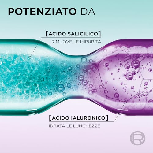 - Formula potenziata con il 6% di Complesso Esfoliante composto da Acido Salicilico e Acido Glicolico per rimuovere delicatamente residui e accumuli di grasso dal cuoio capelluto