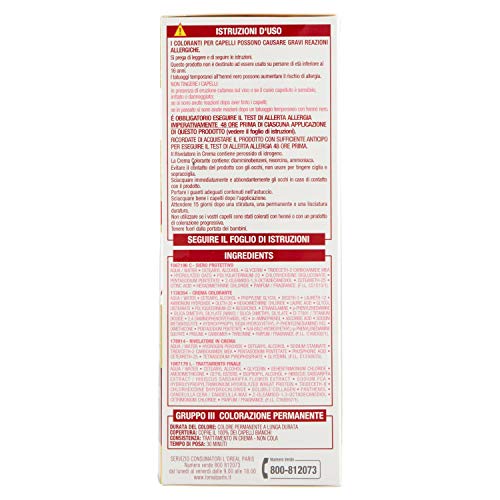 Dettagli: Descrizione del prodotto Excellence Crème è la prima colorazione permanente di L'Oréal Paris che offre un trattamento tripla protezione per prendersi cura dei capelli durante tutte le fasi della colorazione. Inoltre, la nuova formula arricchita con Pro-Cheratina rafforza e rivitalizza i capelli, garantendo una copertura perfetta dei capelli bianchi e un colore ricco e omogeneo di lunga durata. Ingredienti Gli elenchi degli ingredienti dei prodotti L'Oréal Paris vengono aggiornati regolarmente. Ti invitiamo quindi a leggere l'elenco che troverai sulla confezione del prodotto per assicurarti che gli ingredienti siano adatti al tuo uso personale.