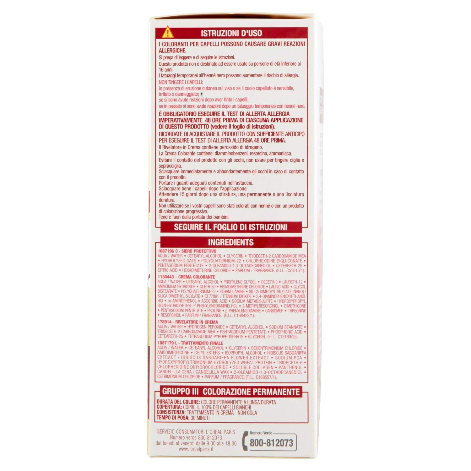 Dettagli: Descrizione del prodotto Excellence Crème è la prima colorazione permanente di L'Oréal Paris che offre un trattamento tripla protezione per prendersi cura dei capelli durante tutte le fasi della colorazione. Inoltre, la nuova formula arricchita con Pro-Cheratina rafforza e rivitalizza i capelli, garantendo una copertura perfetta dei capelli bianchi e un colore ricco e omogeneo di lunga durata. Ingredienti Gli elenchi degli ingredienti dei prodotti L'Oréal Paris vengono aggiornati regolarmente. Ti invitiamo quindi a leggere l'elenco che troverai sulla confezione del prodotto per assicurarti che gli ingredienti siano adatti al tuo uso personale.