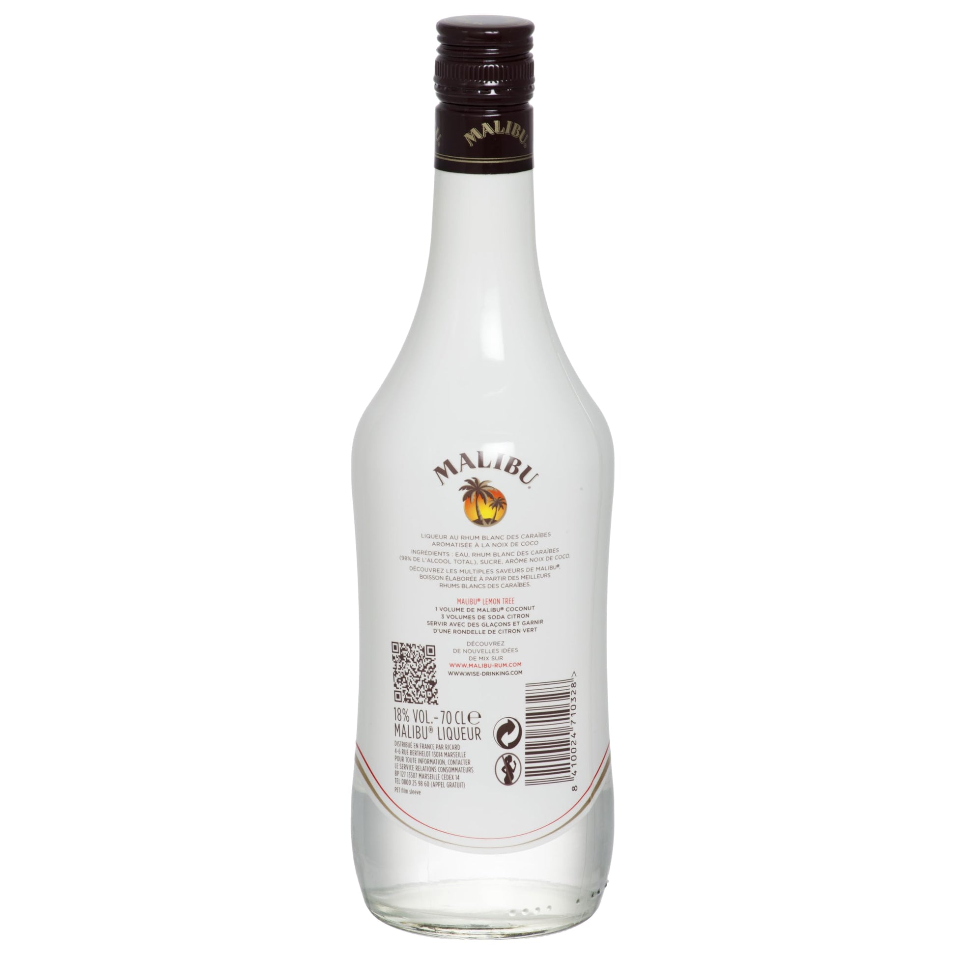Dettagli: Malibu' Liquori Nazionalibottiglia da: 0.7Ltipologia: Liquori Nazionaligradazione: 40%Il rum caraibico con aroma di cocco naturale piu venduto al mondoIl gusto di Malibu e delicato cocco fresco con un tocco finale dolceGradazione alcolica: 21% Vol.Malibu'