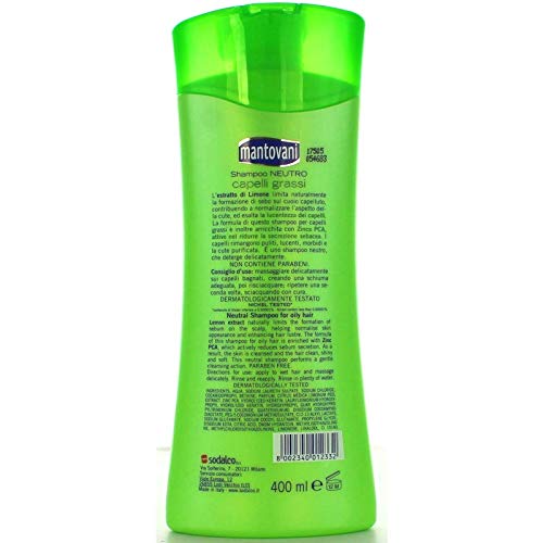 - MANTOVANI SHAMPOO NEUTRO CAPELLI GRASS CON ZINCO PCA ED STRATTO DI LIMONE 400 ML [CONFEZIONE DA 6 PEZZI]